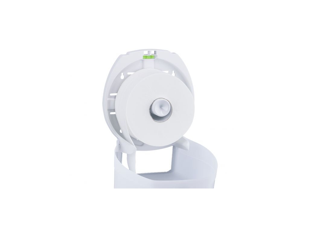 Zásobník na toaletní papír, vyroben z vysoce kvalitního plastu. Lze použít pro toaletní papír o maximálním průměru 23 cm. Zásobník je vybaven vodováhou pro usnadnění montáže. Zamykatelný na klíček.
